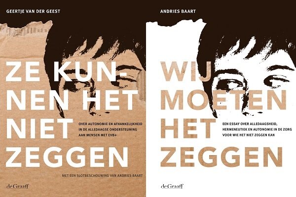 Autonomie bevorderen is een belangrijk ideaal en kwaliteitscriterium in de zorg. Maar autonomie zou voor mensen met een ernstige verstandelijke beperking en moeilijk verstaanbaar gedrag (EVB+) praktisch onmogelijk en theoretisch problematisch zijn. Geertje van der Geest laat in haar boek ‘Ze kunnen het niet zeggen’ zien dat het wel mogelijk is en wat er voor nodig is. Andries Baart gaat in het bijbehorende essay ‘Wij moeten het zeggen’ in op de rol van begeleider.