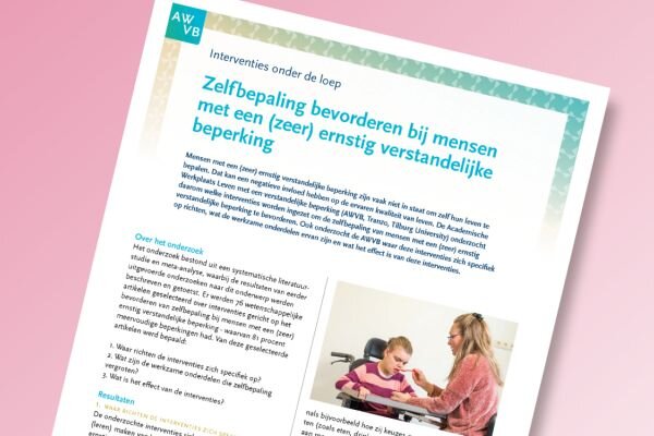 Voor mensen met een (zeer ernstig verstandelijke beperking kunnen vaak niet zelf hun eigen leven bepalen. Dat kan een negatieve invloed hebben op de ervaren kwaliteit van leven. Daarom onderzocht de AWVB welke interventies er zijn om die zelfbepaling bij deze doelgroep te bevorderen. De uitkomsten zijn verzameld in een factsheet.