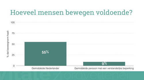 Eerder dit jaar was ik voor een presentatie op zoek naar actuele cijfers over bewegen. Hoeveel beweegt de gemiddelde Nederlander? En hoeveel bewegen mensen met een verstandelijke beperking?