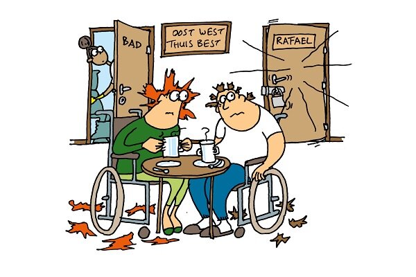 Een begeleider in de gehandicaptenzorg legt een schrijnende casus voor aan Klik. Bewoners zijn bang voor een jongeman die zij begeleidt vanwege zijn bijtgedrag. Uit nood doet ze soms de deur van zijn slaapkamer op slot als ze met iemand in de badkamer bezig is, omdat hij anders anderen bijt, tot bloedens toe. Ethicus Maaike Hermsen gaat in op de morele stress die de begeleider ervaart en helpt bij de zoektocht naar een oplossing. | Illustratie Auke Herrema
