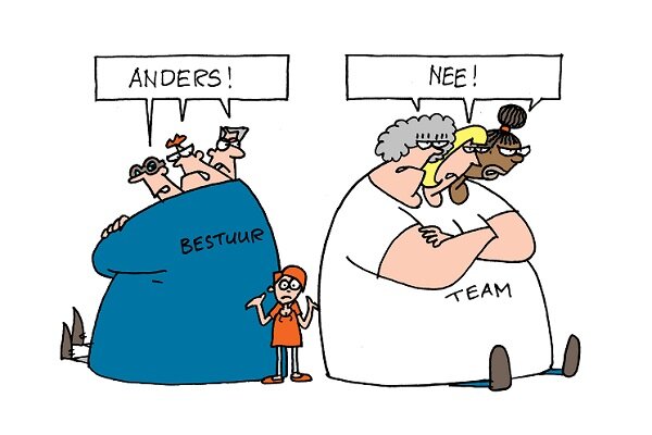 Wat doe je als de teamleider drastische veranderingen aankondigt waar je als team niet achter staat? Ethicus Jan Delhaas geeft advies in een situatie waarin het management en zorgverleners niet goed met elkaar communiceren. Beste ethicus, Zonder inspraak van ons team heeft onze woning een nieuwe teamleider gekregen, die daarnaast twee andere woningen onder haar hoede heeft. Wij zien haar niet zo zitten, haar reputatie is haar vooruitgesneld, en we hebben onder elkaar afgesproken dat we zo min mogelijk meegaan met haar veranderings...