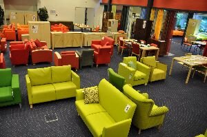 Cliënten van De Hartekamp Groep, instelling voor mensen met een (verstandelijke) beperking, kunnen zelf de inrichting van hun nieuwe woning uitkiezen in de aula van de instelling in Heemstede. De aula is tijdelijk ingericht als showroom voor de cliënten die verhuizen naar een nieuwe woning.