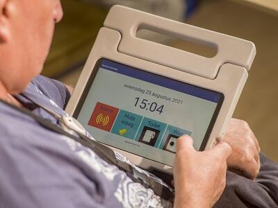 Ook het nieuwe oproepsysteem van BproCare zorgt voor tijdwinst. “Cliënten hebben een tablet waarop ze kunnen aangeven waar ze hulp bij nodig hebben. Zo komt niet iedere druk op de knop als alarm binnen, maar als hulp bij douchen, toiletgang of hulp bij de was. Medewerkers kunnen daardoor veel beter hun werk indelen. Bovendien kunnen we op de tablet ook oproepknoppen op maat maken. Ook hier gaan we uit van de behoefte van de cliënt.”