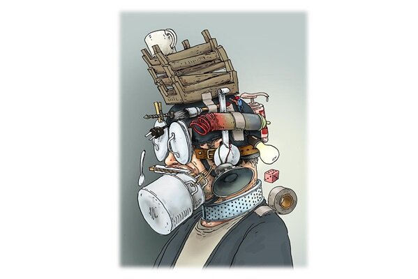 Marco is een man vol trots. Hij vertelt graag over alles wat hij heeft, wat hij kan en welke toekomstplannen hij koestert. Marco laat zich zien als iemand die het leven stevig in handen heeft. In werkelijkheid is dat overzicht er niet altijd. Zo raakte hij steeds meer ingebouwd in de spullen in zijn huis. | Illustratie Joep Bertrams