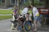 kinderen kunnen op het veldje actief aan sport deelnemen of door een