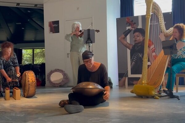 In de nieuwe voorstelling Strijk is muziek van Pachebel, Massenet, Faure en het eigen stuk Session te horen, gespeeld op trommels, harp, viool en handpan. Ook zorgen de theatermakers ervoor dat de voorstelling te ruiken, voelen en van dichtbij te beleven is.