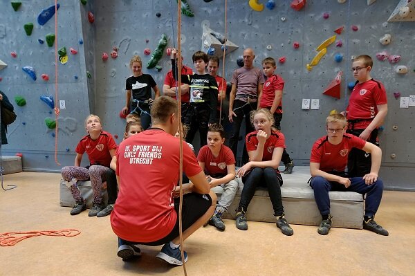 Only Friends Utrecht is een sportclub speciaal voor kinderen en jongeren met een beperking, die op zaterdagen verschillende sportactiviteiten aanbiedt. Waaronder ook een klimactiviteit, die 22 oktober op het programma stond en waar twaalf kinderen aan deelnamen. | Fotografie Karin de Balvert Bij binnenkomst in de klimhal van Mountain Network in Nieuwegein beginnen de kinderen – allen tussen de 7 en 13 jaar - direct met elkaar te stoeien op de klimmatten. Ouders kijken geamuseerd toe en zeven klimvrijwilligers staan klaar om te zekere...