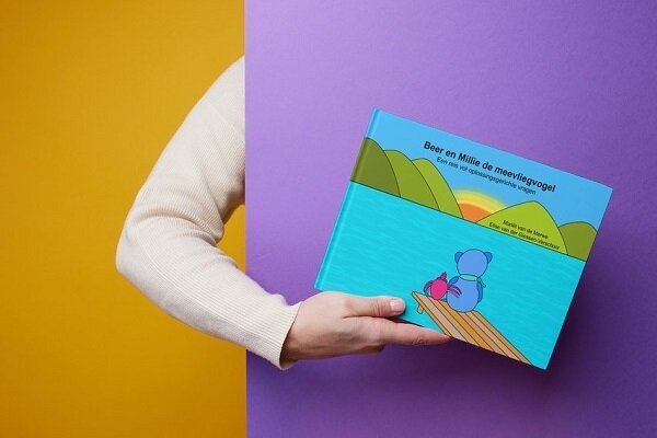 Beer en Millie de meevliegvogel. Een reis vol oplossingsgerichte vragen. Door: Mariët van de Merwe (illustrator)en Elise van der Giessen-Verschoor (auteur). Uitgegeven in eigen beheer. Prijs prentenboek: €19,95. Prijs prentenboek en werkboek €27,50