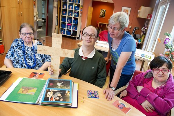 Ook op de dagbesteding kan je cliënten helpen bij het verwerken van een overlijden. Activiteitenbegeleider Alice Vos vertelt hoe ze samen met cliënten bezig is met het afscheid van een groepsgenoot. Alice Vos werkt al 28 jaar als begeleider in dagcentrum de Beemster van Cordaan. “Ik ben oud geworden met de cliënten. Er zijn natuurlijk cliënten vertrokken of overleden, maar veel mensen heb ik lang meegemaakt. In de groep zitten vier cliënten die ik al vanaf het begin ken. Toen ik hier pas werkte was er nog maar weinig bekend over o...