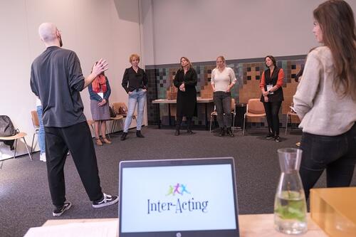In de workshop van Jake van theaterschool InterActing voor jongeren met autisme maakten de deelnemers kennis met improvisatie, een vorm van theater zonder script. Via improvisatie-oefeningen leerden de deelnemers zelf ervaren hoe je cliënten het onverwachte beter kunt laten omarmen.