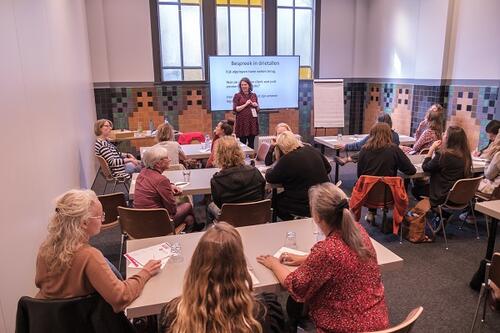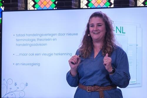 Na een korte pauze en een versnapering was het tijd voor de workshops. GZ-psycholoog Janine Breukelman legde uit hoe je met stereotiep en ook zelfbeschadigend gedrag bij mensen met een verstandelijke beperking en autisme omgaat. Aan de hand van een casus nam ze deelnemers mee in het gebruik van de ASS-wijzer en hoe je daarmee inspeelt op de sensorische informatieverwerking (SI).
