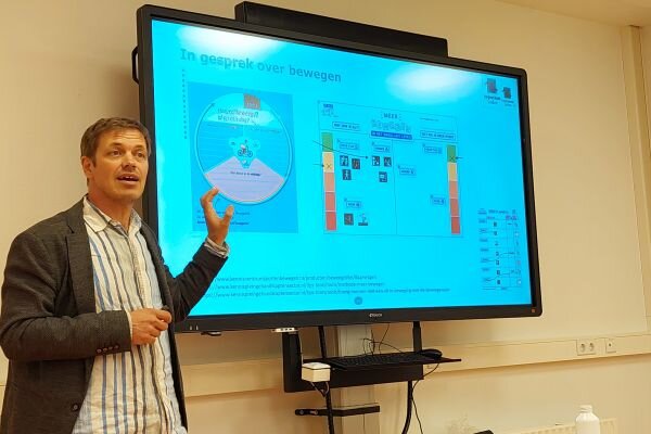 In een klaslokaal luisterden zestien deelnemers geboeid naar Gast, die uitlegde dat leefstijlinterventie iets van de lange adem is. Als voorbeeld greep hij naar hoe de samenleving in de loop van 50 jaar anders tegen roken is gaan kijken. “In de jaren 70 rookten meesters en juffen nog in het basisonderwijs, gewoon in de klas. In de jaren 80 zat je nog in een rookcoupé in de trein. En eind jaren 90 had ik nog meetings in een vergaderhok, dat blauw stond van de rook. Als je daar nu op terugkijkt, kun je je dat helemaal niet meer voorstellen. Maatregelen tegen roken stuitten destijds op weerstand, maar inmiddels kennen we nog maar weinig mensen die terug willen naar die tijd. Het geeft aan dat dit soort interventies lang duren om te landen, het gaat stapje voor stapje.”