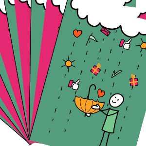 De ComplimentenRegen is bedoeld als een fijne regenbui na een warme zomerdag. Het verfrist en is heel welkom! De term ‘regen’ is bewust, omdat er een keuze is. Want je hebt iemand die complimenten geeft (de regen), maar de ander moet er ook in gaan staan en de complimenten ontvangen.